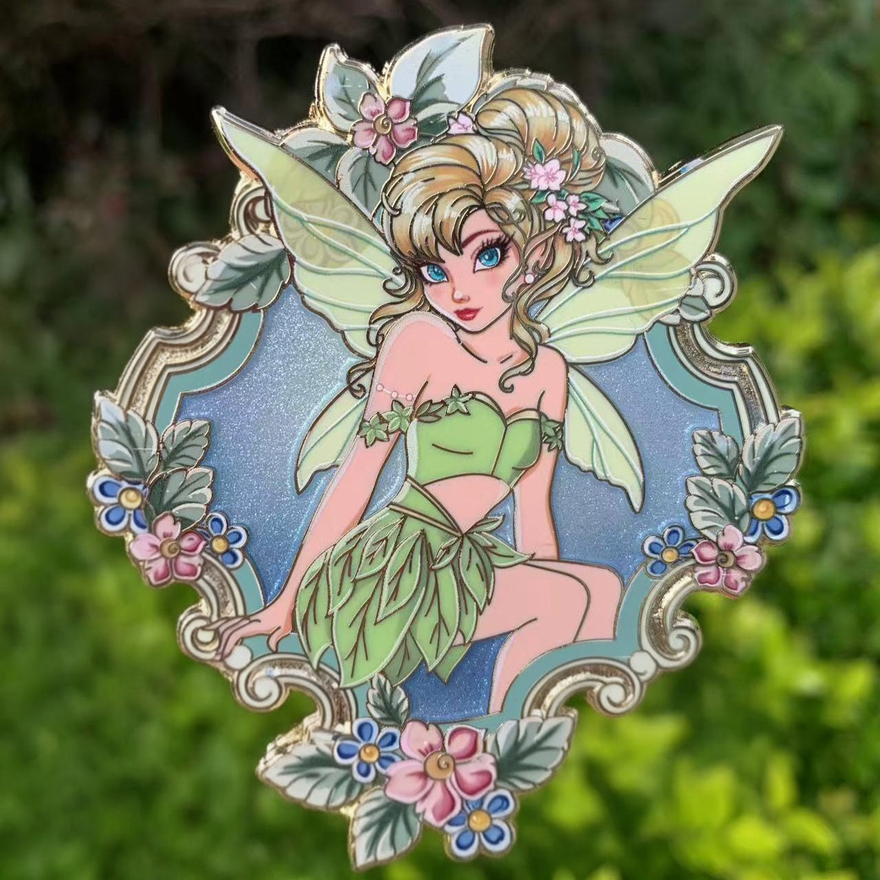 This hard enamel pin measures 3" with gold finish. It features a custom back stamp, sandblast, and screen printing effects. LE35